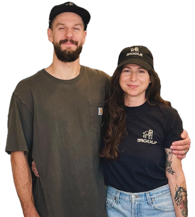We named Wiggle for our dogs, Frannie and Anita WHO REMIND US THAT JOY IS FOUND IN MOVEMENT, IN CONNECTION, IN THE LITTLE WIGGLES OF LIFE.